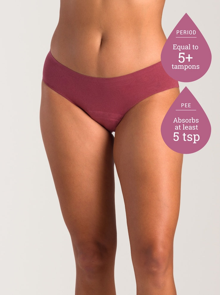 Just’nCase Cotton Midi Briefs with Everyday Absorbency are designed for light-to-medium period days and light bladder leakage. They absorb at least five regular tampons’ worth of flow. For heavy period days, post-baby bleeding and light-to-medium incontinence we recommend our Extra Absorbency styles, which absorb and retain more than ten tampons’ worth of flow. If you have little or no bladder control, we’re sorry our underwear will not meet your needs. Please discuss your options with your health professional or carer.